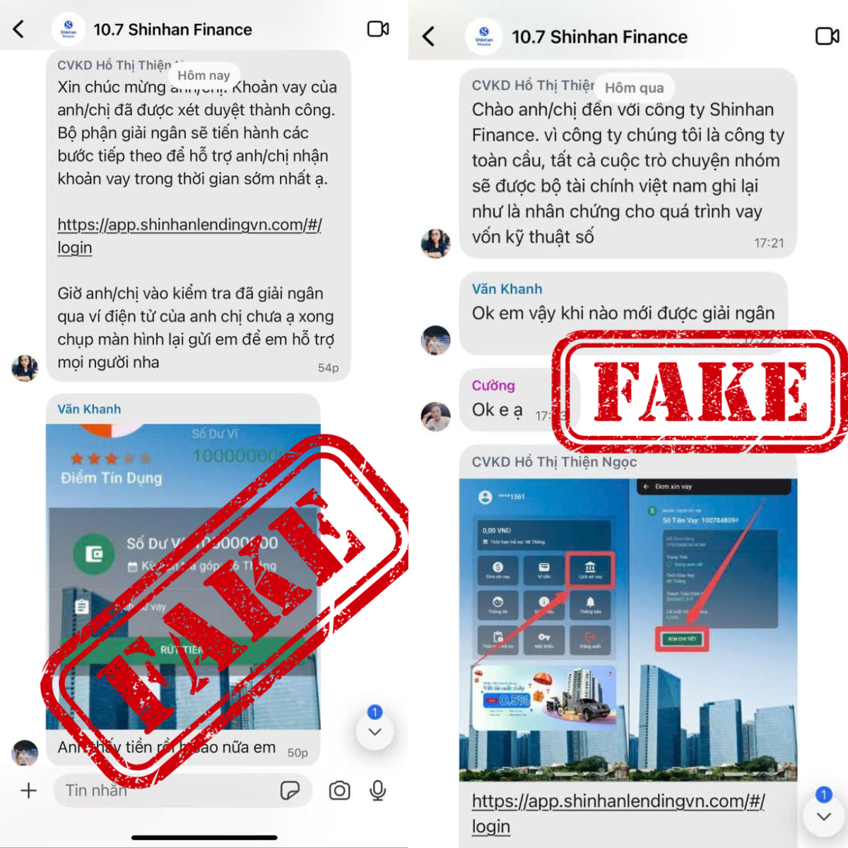 Sau khi người dùng vào nhóm, đối tượng lừa đảo sử dụng tài khoản mạo danh nhân viên Shinhan Finance để tiếp cận, ngoài ra còn có các đối tượng giả mạo đóng vai trò “chim mồi” làm khách hàng để tăng thêm phần uy tín. Các đối tượng này hướng dẫn khách hàng nhấn vào các đường link giả nhằm: